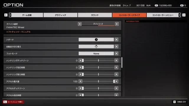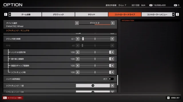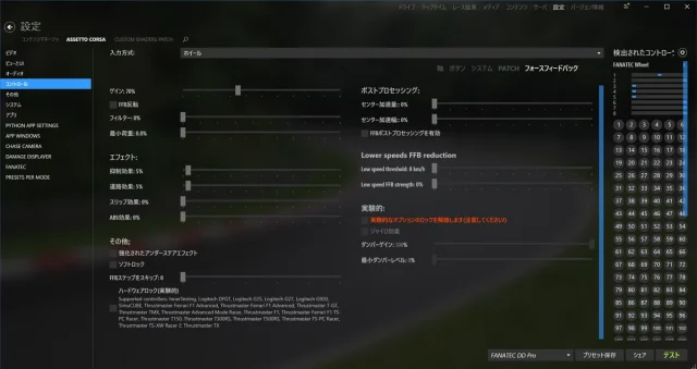 本作はFFB情報が少なく、FFBの値を最大にしてもあまり強い手応えは得ることができません。